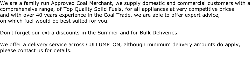 25kg 25kg 25kg 25kg 25kg 25kg 25kg 25kg PREMIER APPROVED COAL MERCHANT FOR THE CULLUMPTON